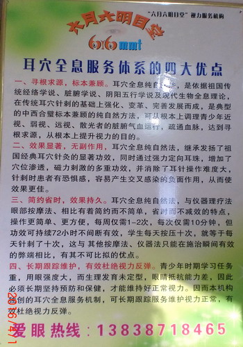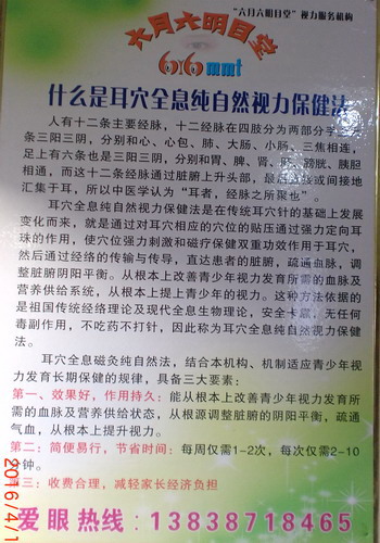 从传统中医理论角度上讲,耳与脏腑、经络系统息息相关,耳穴可以反映经络系统、五脏六腑的疾病,亦可经刺激耳廓反应点(耳穴)对其进行调节,已达到治病强身的目的。中医认为近视是因为眼部调节机能失常、脏腑功能失调,肝气不足、眼部气血不畅、先天发育不足或后天用眼不当,“久视伤目”等所致。耳穴具有疏经活血、疏肝明目,健脑宜视的功效,故耳穴疗法有显著疗效不足为奇。 18岁以下未患或已患近视的青少年儿童如果采用耳穴疗法可有效预防和改善近视。耳穴疗法,对皮肤无损害,亦无任何副作用。疾病要防患于未然,家长一旦发现孩子有近视问题,要提前干预和治疗,帮助孩子远离近视眼。 |