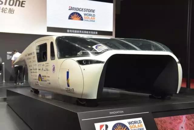 普利司通展台的这辆太阳能赛车由日本工学院大学制造,曾参加在澳大利亚举行的世界太阳能挑战赛,并于2015年斩获亚军。所有参加这项赛事的车辆必须依靠太阳能从达尔文开到阿德莱德,总计里程约3000公里。尽管在目前的技术条件下,太阳能动力汽车距离量产仍有很长的路要走,但这台赛车所使用的普利司通ECOPIA低滚阻轮胎却在许多量产车上都有应用。